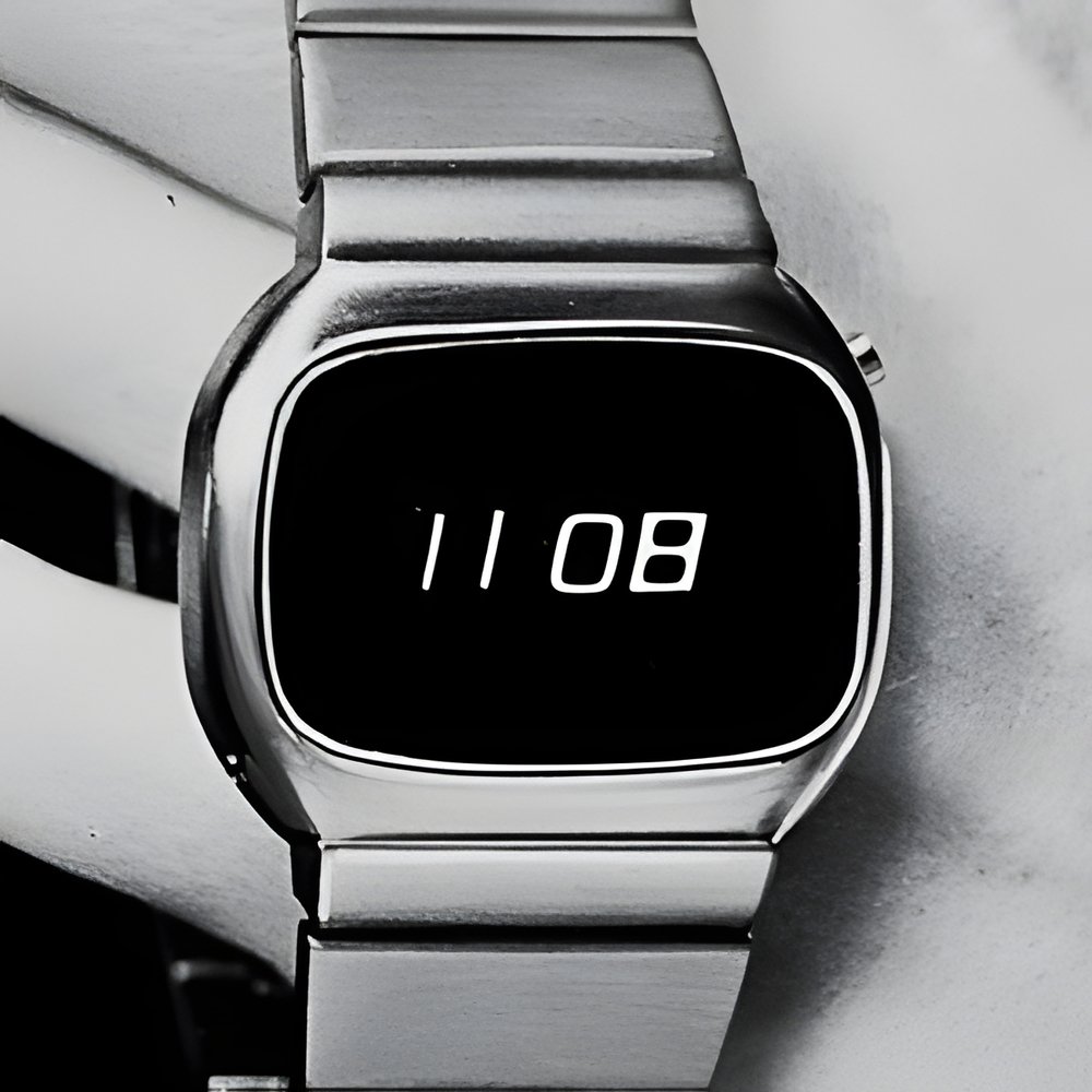 A representative example of Agon’ s LED timepiece collection that comprises over 60 different models. 6 functions, including alphanumerical readout of the day of the week. A similar, smaller-sized lady’ s model is also available. (AGON)