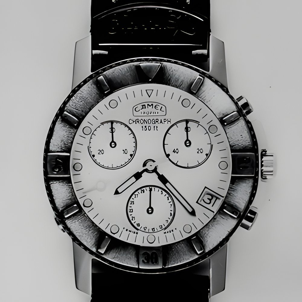 The work of an internationally reputed Italian designer, the new « Chrono 33 » model is more compact than its predecessors, with a diameter of only 33 mm - the ideal size for « Camel Trophy Adventure Watch » enthusiasts. It is equip with a chronograph movement to 1/5th of a second and a 30-minute totalizer. The date is shown both in a dial aperture at 4 o’clock and on a circular subdial at 6 o’clock. Steel case water-resistant to 50 m, with screwed-in back; protected crown and pushpieces. Available with choice of white, black or ivory-hued dial. Steel-coloured or bronzecoloured rotating bezel. Sold in over 40 countries, the « Chrono 33 » design is covered by the Mondaine International Service Organization (MISO).