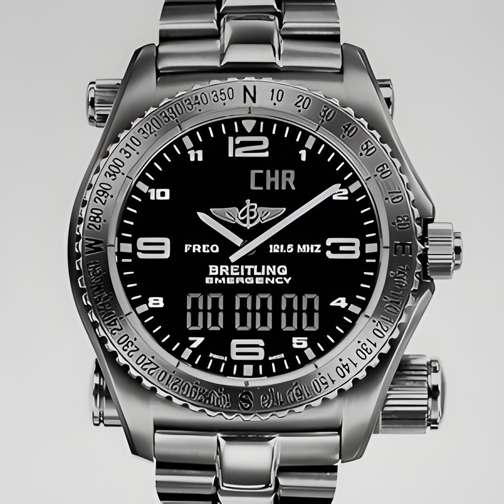 With its new wrist-worn instrument watch for pilots and aircrews, Breitiing brings the world of aviation a new piece of survival equipment that neatly complements existing systems. Incorporating a miniature transmitter, a single-use type to prevent abuses, the «Emergency» watch is designed to help rescuers locate with greater speed and accuracy the passengers and crew of an aircraft that has crashed, made a forced landing or been otherwise disabled. The «Ernergency’»s decisive advantages over other devices are that it is worn on the wrist and that its transmitter is permanently set to the 121.5 MHz emergency aviation frequency. Simply unfolding and deploying its antenna triggers a signal that can easily be detected by search planes and helicopters which can then home in on it and provide help more quickly and efficiently to survivors. Extensive field testing has confirmed that the «Emergency’»s radio signalling capability and range worked as well as expected, even in rough terrain and snow-covered areas. Under optimum conditions, it signal was detected as far as 400 kilometers away. Developed by Breitiing in collaboration, for radio transmitter technology, with a Groupe Dassault engineering team, the multifunction «Emergency» instrument watch is now undergoing certification and will shortly be entering service with professionals the world over. Its horological functions include an electronic chronograph calibrated to 1/1 00th of a second, an alarm and a countdown timer along with a second-timezone indicator. The «Emergency» will be sold with a testing device for checking at will that the emergency transmitter is in perfect working order without any interference to emergency frequencies.