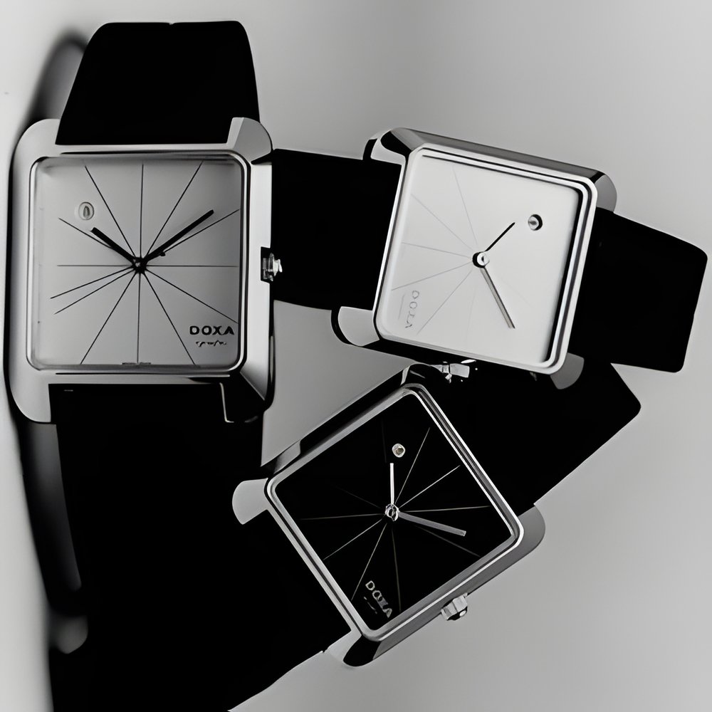 Inspired by Bauhaus aesthetics, this re-issue of one of Doxa’s most popular designs of the 1950s now joins the most promising trends of the moment. Its shaped case is water-resistant to 30 m and holds a quartz movement with hour, minute, seconds and date functions. Scratch-resistant sapphire crystal. Note the original positioning of the product signature and calendar aperture. Made in two sizes, this design is also available with round case and black leather strap exclusively.