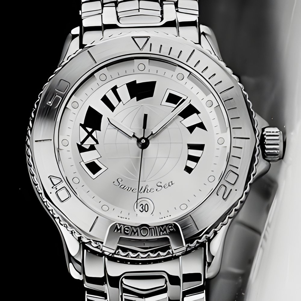 The Memotime company now brings people with abiding interest in undersea beauty, a timepiece designed for discovery and exploration. Available in steel or in steel enhanced with 10-micron goldplate, it comes with a selfwinding or quartz movement — exclusively the latter for the most compact versions. Water-resistant, its case features a unidirectional rotating bezel as well as a screw-locked crown and case back. Naval pennants decorate a dial protected by a scratch-resistant sapphire crystal. Each model bears the inscription «Corum Design».