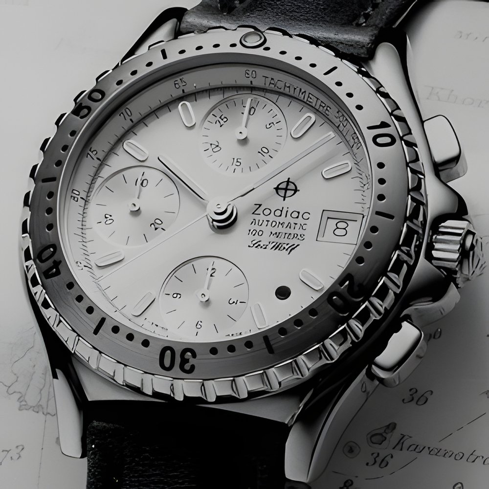 Perfectly suited to all sorts of sports activities, this «Seawolf» chronograph offers demonstrated quality and reliability. Its polished steel case protects a selfwinding movement with 12-hour, 30-minute and seconds totalizers. Its screwed-in back and screw-locked crown guarantee its water-resistance to 100 m. Two-tone unidirectional rotating bezel with 0-60 graduations and tritium dot at 12 o’clock. Luminous hour markers and hands on white dial. Crown guards and shaped pushpieces. Upholstered and saddle-stitched amber-hued leather strap.