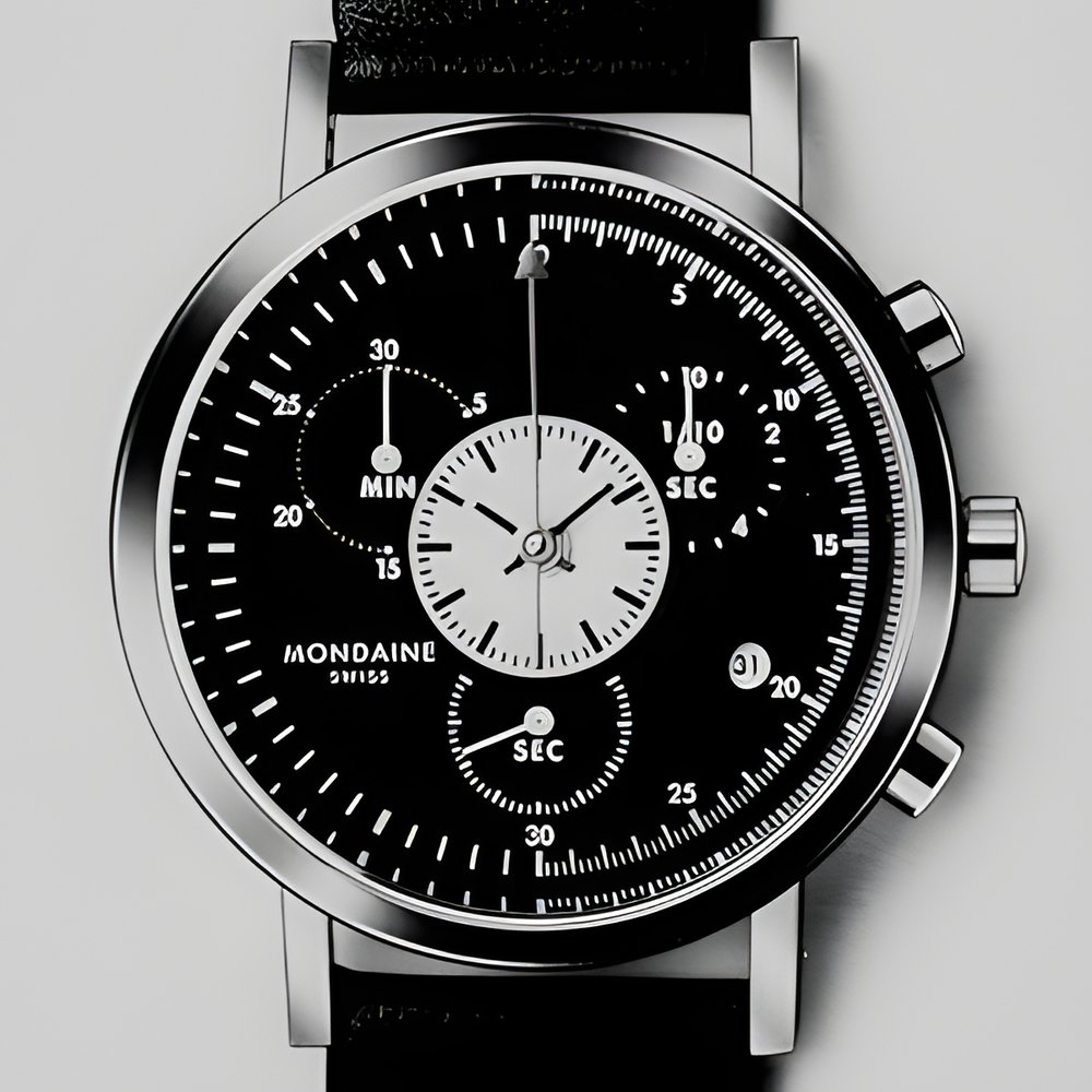 Inspired by the classic design of Mondaine’s « Railway » models, this quartz chronograph displays unquestionably original styling. It is fitted with an ETA chronograph movement calibrated to 1/10th of a second and featuring a seconds and a 30-minute totalizer. Fashioned from 100% recycled metal with stainless steel back, its case is water-resistant to 30 in. Available in a choice of black dial with white centre or white dial with black centre protected by a mineral ciystal, the watch is fitted with a red or black leather strap. Bearing the Swiss quality label, it is covered by a one-year warranty provided by the international after-sales service network (MISO).