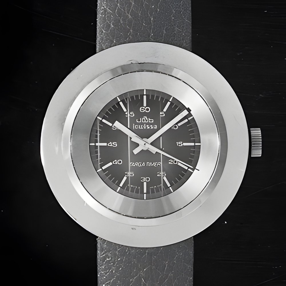 Case with chromed and gilt surfaces, coloured dial : new fashions for the younger generation - at a price they can afford. (JOWISSA)