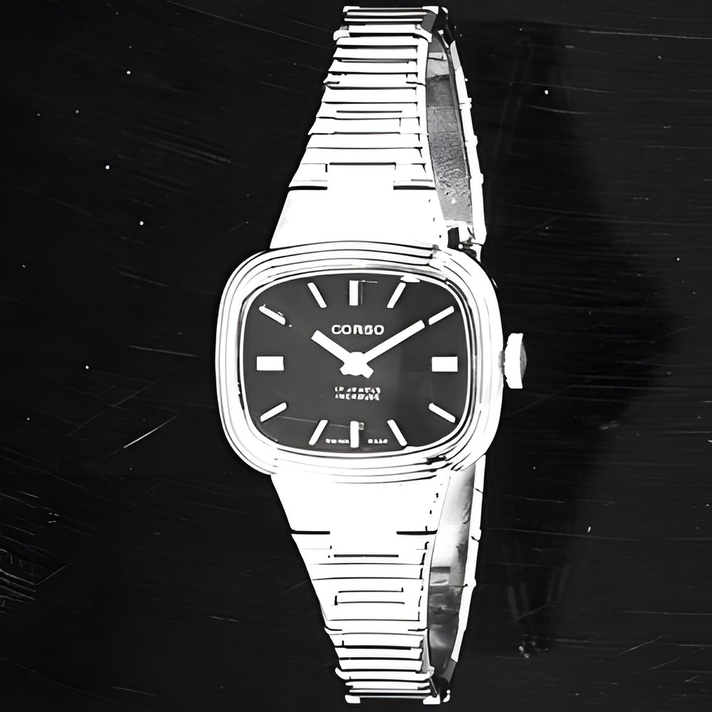 Graceful and petite watch with integrated styling for its gilt bracelet and case. The pattern on the bracelet continues on the dial. Economically priced (VIATOR - Corso)