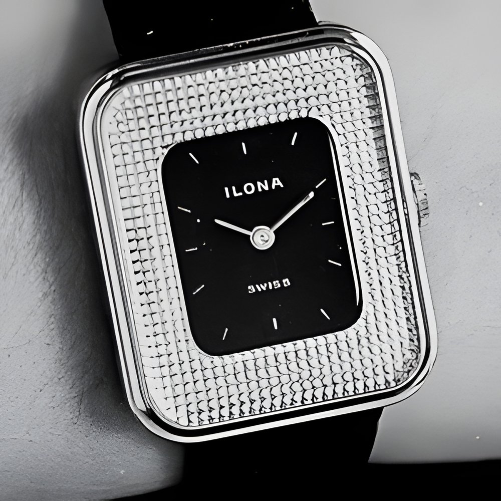 Slim, gloss-polished case; wide inner bezel with “Clous de Paris” decoration. Black dial with gold hour markers. Both chic and economical. (ILONA)