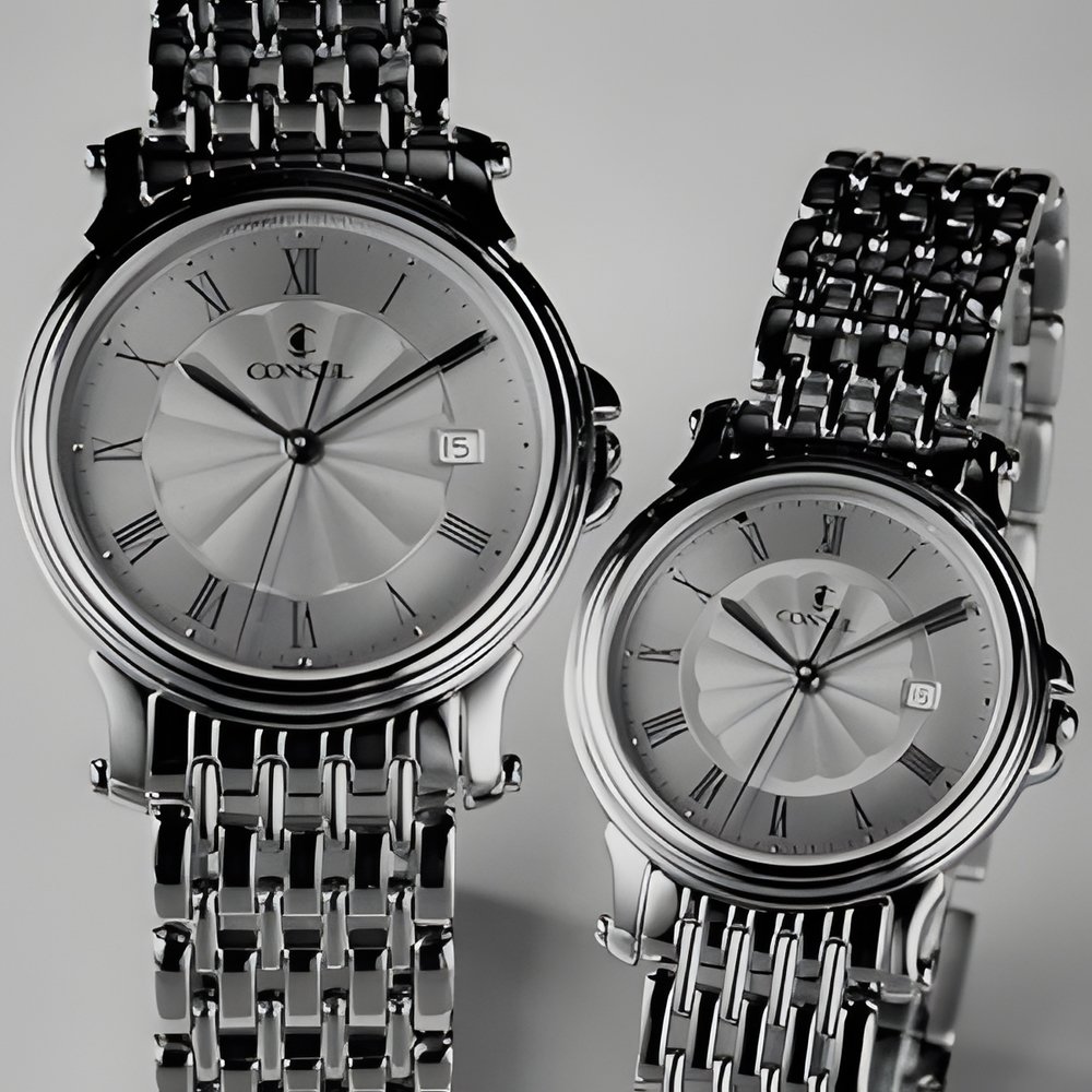 This latest creation adds a new note of distinction to one of Consul’s grand classic models, the Regent’s Club «Excellence». With a Swiss quartz movement with calendar and centre seconds hand, this watch is waterresistant to 30 m and available in both men’s and ladies’ sizes. It comes in all steel, two-tone, or all gold-plated versions. A fmely engine-turned dial, available in silvered white, champagne or blue, is protected by a sapphire crystal. There is a choice of black, brown, green or blue leather straps or steel, two-tone or all-plated bracelets.