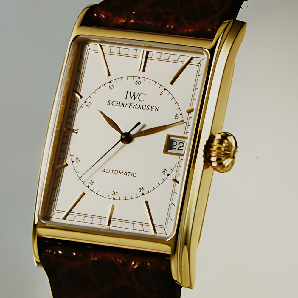 In keeping with its reputation as a leading designer of square watches, IWC is presenting a new model this year, the «Novecento Automatic)). Perfectly adapted to today’s aesthetic trends, this model is the latest addition to a line which already includes perpetual calendar and mechanical versions. The 960 calibre movement with centre seconds hand and date at 6 o’clock is housed in a 750 (18K) yellow gold case. This watch is protected against shocks and magnetic fields and features a screw-down crown and back, gold rotor and convex mineral glass.