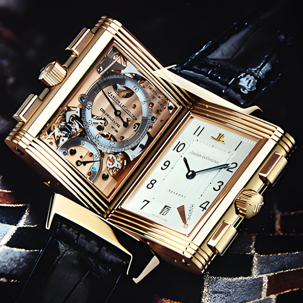 The construction of this movement is exclusive to the brand and underscores its unique horological skills. Manufactured in a limited series of 500, the pink gold «Reverso Chronographe Rétrograde» features a JaegerLeCoultre 829 calibre hand-wound mechanical movement with a 44-hour power reserve. Its functions include a 60-second counter and a 30-minute retrograde counter. On one side of the column-wheel chronograph are the hours and minutes, a solid silver guilloché dial, a date window at 6 o’clock and a shutter hand indicating whether the chronograph is functioning or not. On the other side are two different dials integrated into the entirely decorated movement. The hands are in blued steel, with the hours in Arabic numerals. This model comes on a leather strap with a pink gold folding clasp.