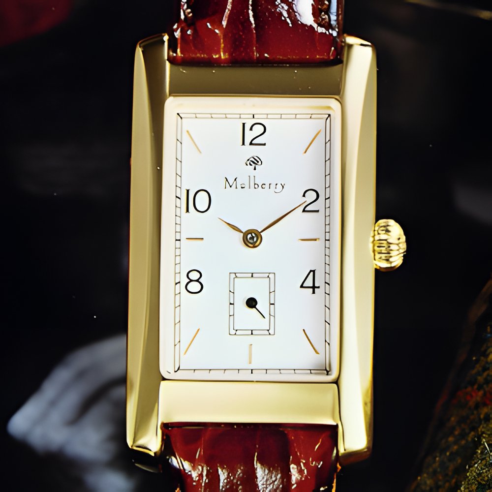 Very British, this curved square classic watch, timeless and yet absolutely contemporary, features a Swiss quartz movement and a hand-finished leather strap. The crown and dial are discreetly adorned with the brand’s symbol.