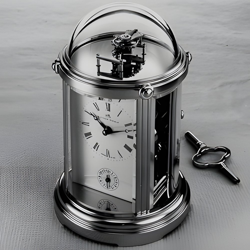 A masterpiece of horological art, this clock has been called the Renaissance because its lines are reminiscent of the architectural style of this period and because it symbolises the revival of Matthew Norman’s collections. Made of solid brass, it features an 8-day mechanical movement with an alarm function. All the parts are hand-polished and the visible mechanism is gilded. Both the crystals and the dome are made of mineral glass.