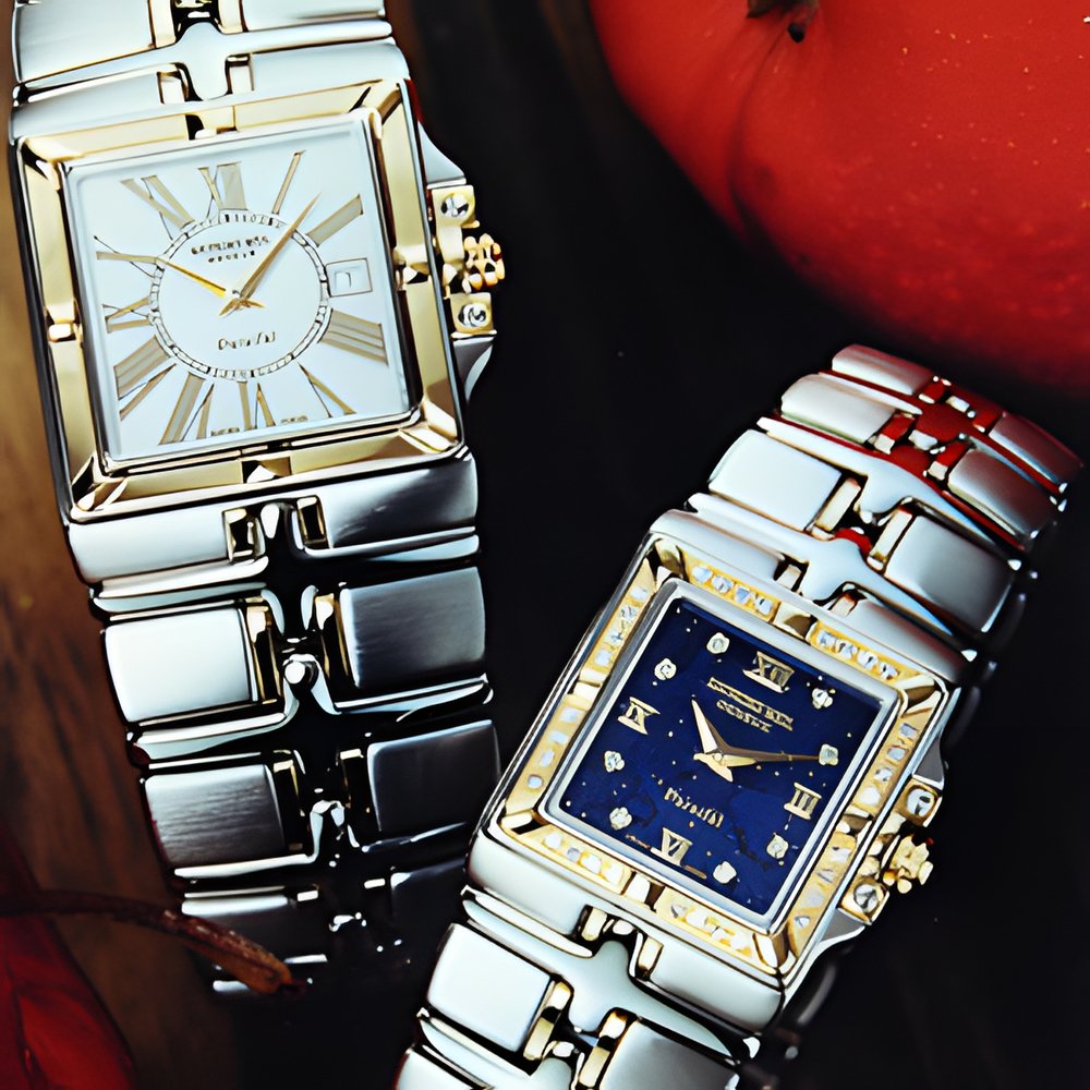 In this new, perfectly integrated version of the «Parsifal», the bracelet forms a natural extension of the case design. These two stainless steel and gold models are water-resistant to 30 m. The ladies’ version features a gold 750 (18K) diamond-set bezel and a blue dial with Roman numerals and diamonds. The men’s version comes with a gold bezel encircling a white dial with gilt Roman numerals and a date window at 3 o’clock. The bracelets are stainless steel and gold 750 (18K).