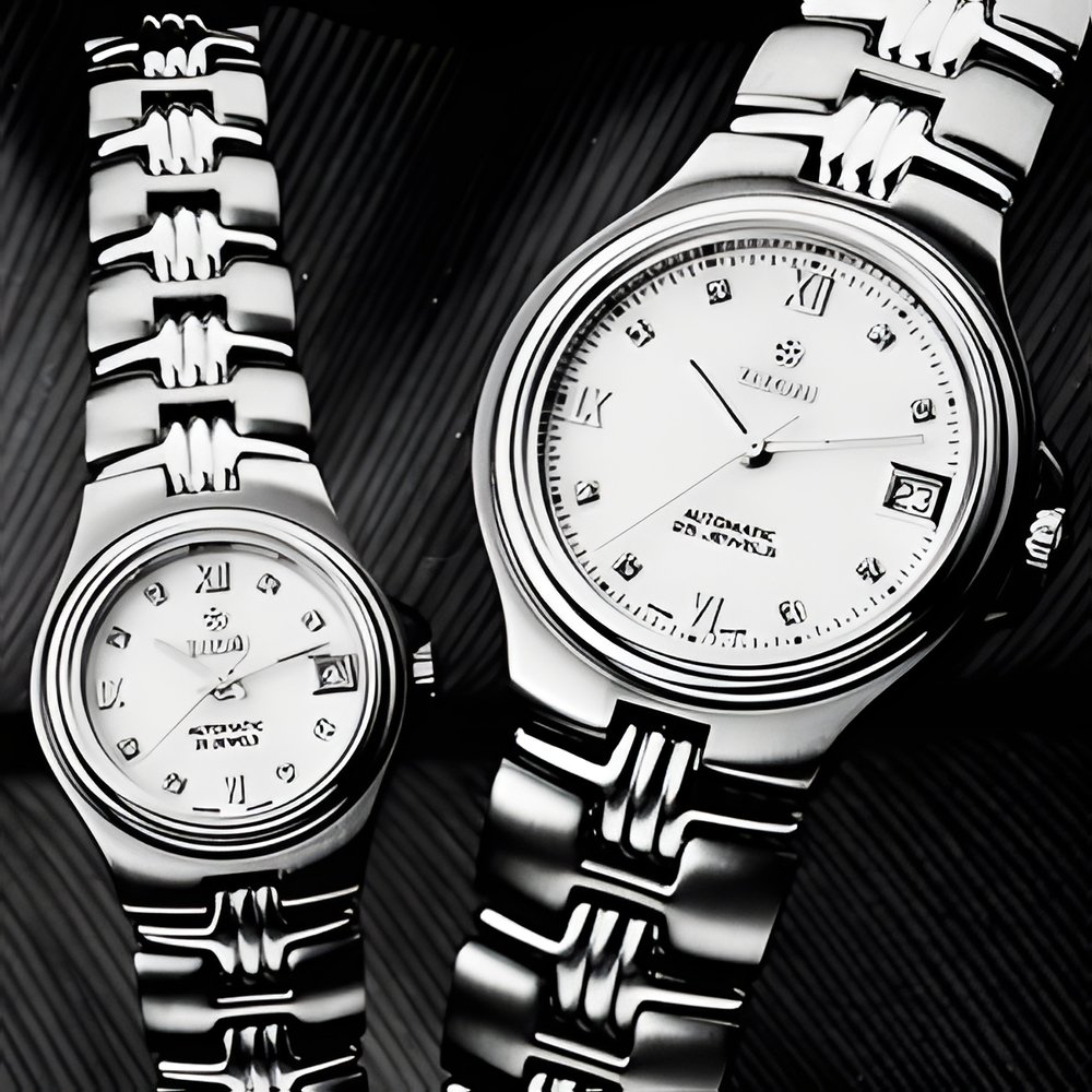 Well-known among other things for the quality of its automatic watches, Titoni presents a new model, for him and her. Attractive and elegantly sporty, they are equipped with an ETA automatic movement. Both the case, which is water-resistant to 50 m, and the bracelet are available in steel/10 micron goidpiate or all 10 micron goldplate. With their scratch-resistant sapphire crystal and champagne or white dial, these timepieces offer all the security of a high-quality product.