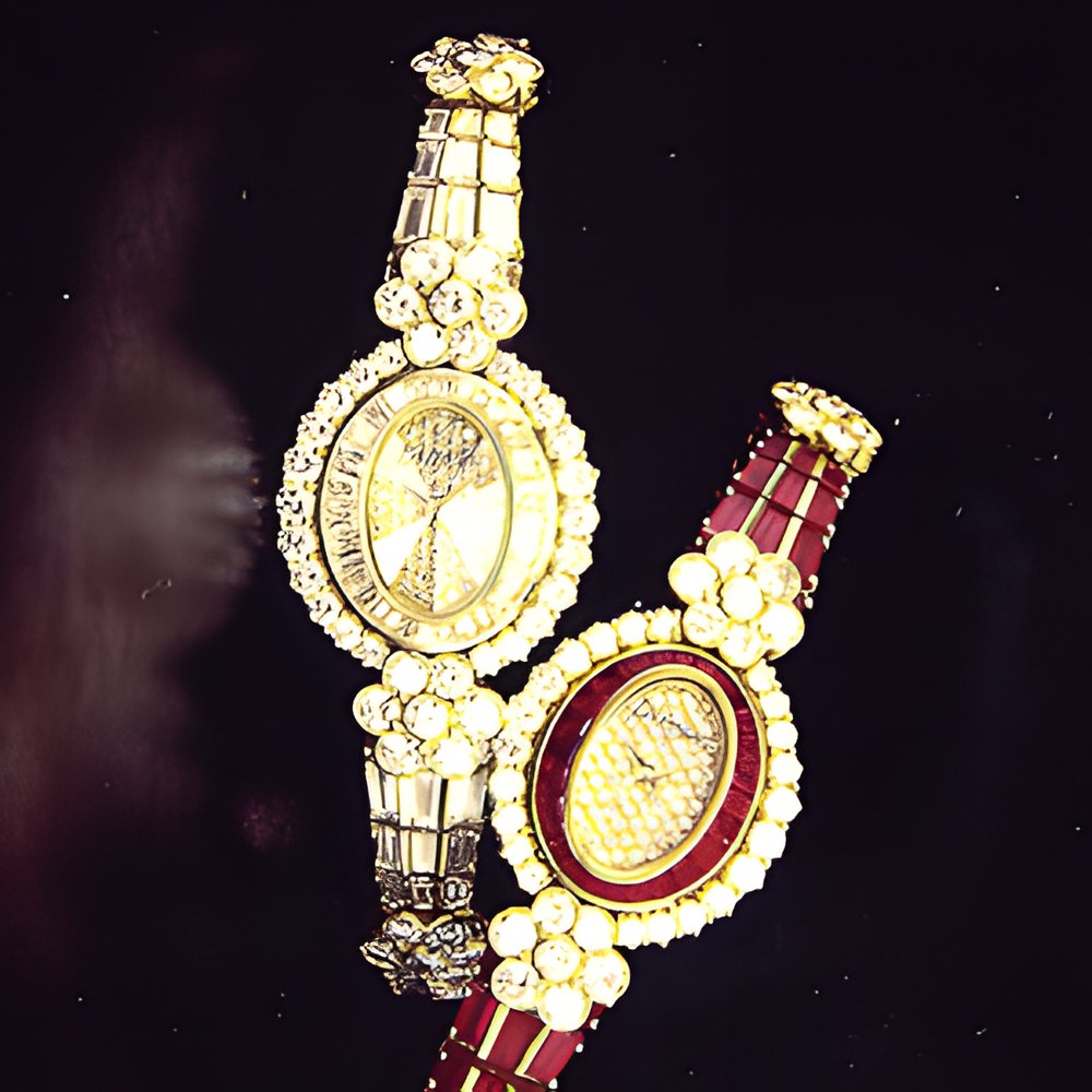 Extremely refined and enhanced with precious stones of exceptional quality, these jewellery watches from the «Femme» collection are presented here in two yellow gold versions. One with a bezel and bracelet set with baguette and round brilliants; the other with a sparkling contrast of brilliants and baguette rubies. The stones on each model total 14.10 ct. The four flowers of round brilliants (4.00 ct) on the bracelet underscore the originality of these two creations. The paved dial, protected by a sapphire crystal, adds a further 0.35 ct of brilliants. Also available in white gold.