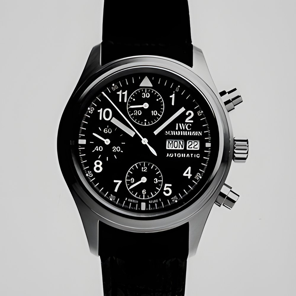 This new «ali-man’s chronograph» is the sort of stopwatch-mechanism timepiece that IWC has long been reputed for. Its calibre 7902 seifwinding mechanical movement with centre rotor has been adjusted in all five positions and offers a 44-hour power reserve. An internal soft-iron shield provides efficient antimagnetic protection. It adds 2/8th of a second to measured times up to 12 hours and displays both the date and the day, with instant correction by the setting crown. This design is notable for its high-tech black ceramic case on zirconium oxide frame, tested at 9 on the hardness scale. A companion watch in matte-finished steel rounds out the collection. Water-resistant to 50 m, these chronographs feature a cambered sapphire crystal and a screw-locked crown. Their leather strap or black, solid steel bracelet comes with a patented clasp.