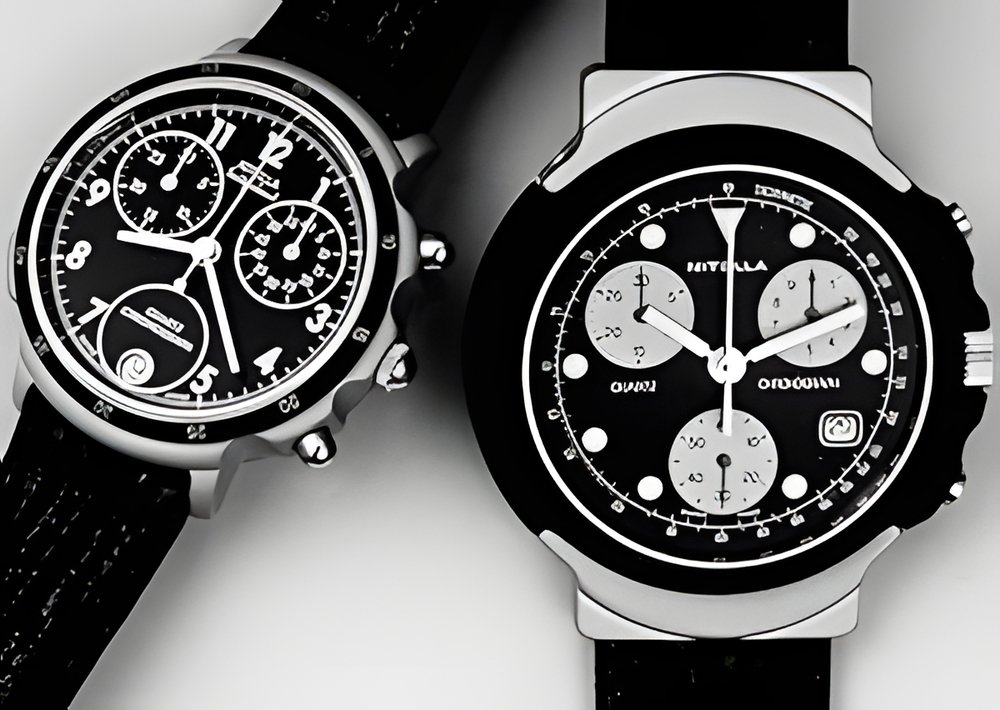 Both fitted with a quartz movement, Nitella’s «Chrono Sport» and «Lady Chrono» feature a non allergenic aluminium case water-resistant to 30 m. They come in a broad range of colours, eight in all, with matching sharkskin strap.