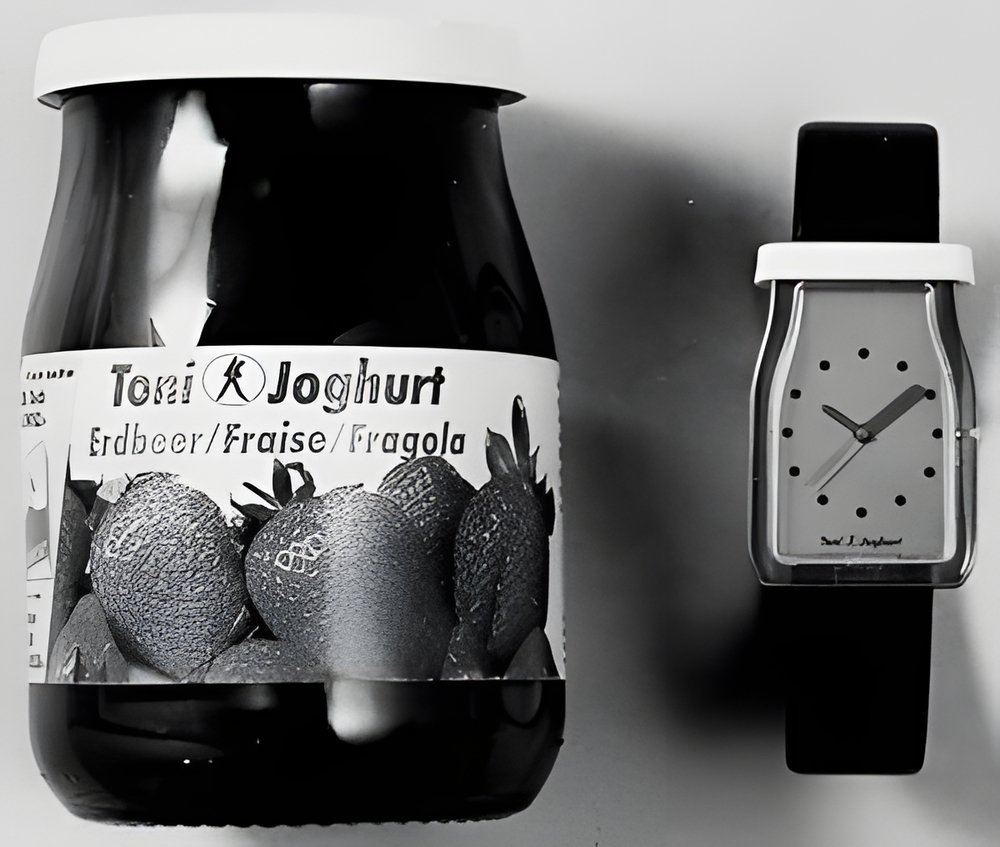 Mondaine’s advertising department decided that the “Toni” company’s familiar Swiss yoghurt jar was worth watching... and watch it they did, creating a timepiece in its likeness, no less! Its designers carefully respected the exact shapes and colours of a packaging design developed by one of Switzerland’s leading milk-product distributors. Unlike the jar, however, the watch is water-resistant to 30 m. Entirely Swiss made and equipped with a leather strap, it is sold with a one-year warranty.