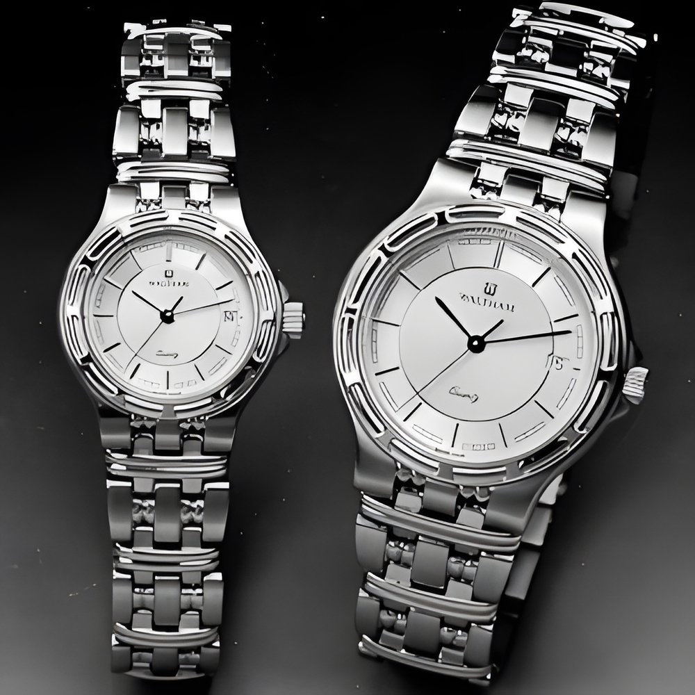 This year, Waltham is presenting a choice of steel and goidpiated designs that round out its upmarket lines of 23K and 18K gold and platinum models. Representative of Walthams new, rugged yet stylish sports line, the models pictured here contain a precision ETA quartz movement with date calendar at 3 o’clock. Water-resistant to 50 m, the case is equipped with a screw-locked crown and a scratch-resistant sapphire crystal.