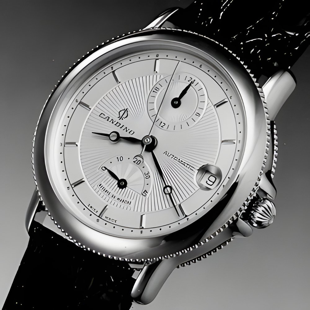 In tune with watch-industry traditions, Candino has developed its own seifwinding movement design. Built around an ETA Swiss Made calibre specially finished for Candino, it features a power-reserve and a second-timezone indicator. All functions are controlled through the crown: date change, time setting and instant adjustment of the 24-hour time display synchronized with the minute hand.