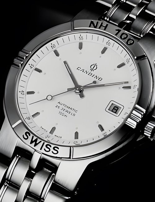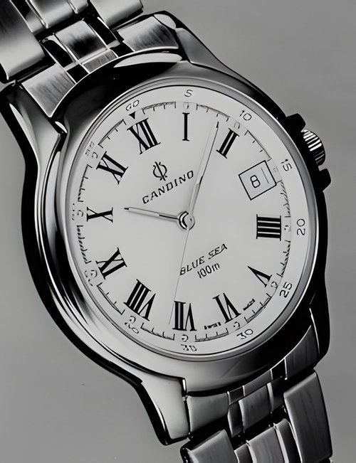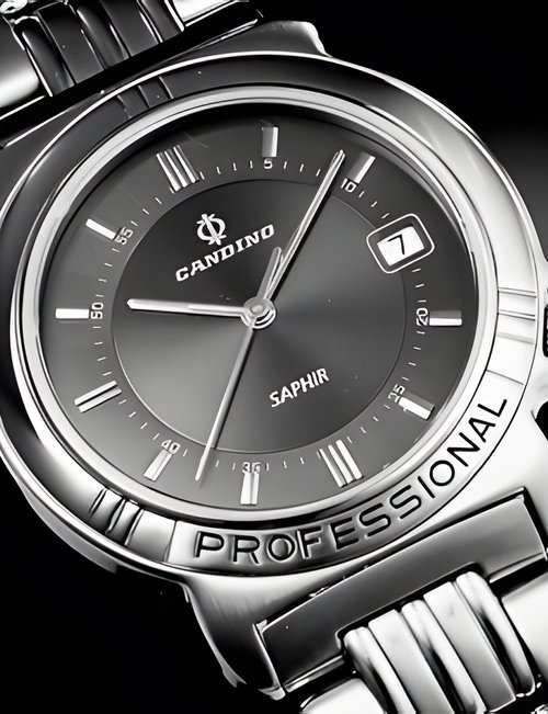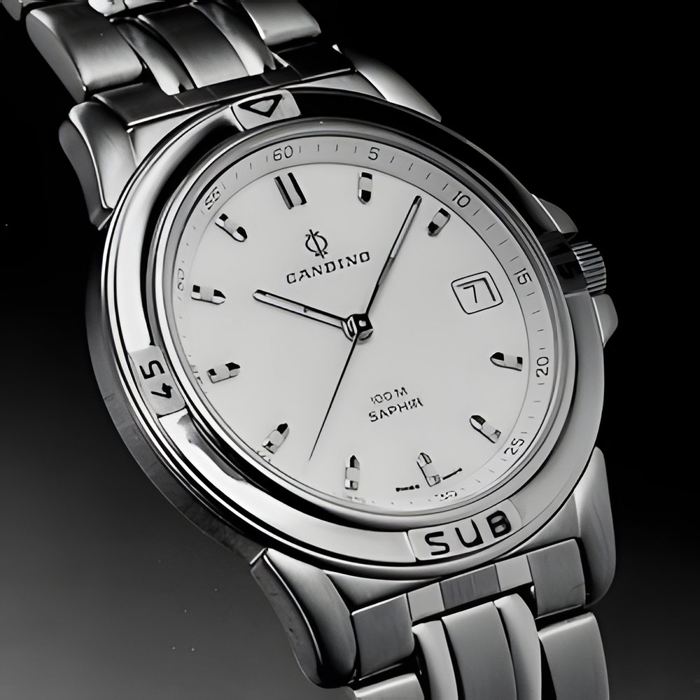Designed for adventure, Candino’s «Sub» sports watch matches style and substance : its case’s screw-locked back and crown fitted with a pair of O-Ring gaskets is water-resistant down to 100 m. Sapphire crystal. Solid steel bracelet with safety clasp.