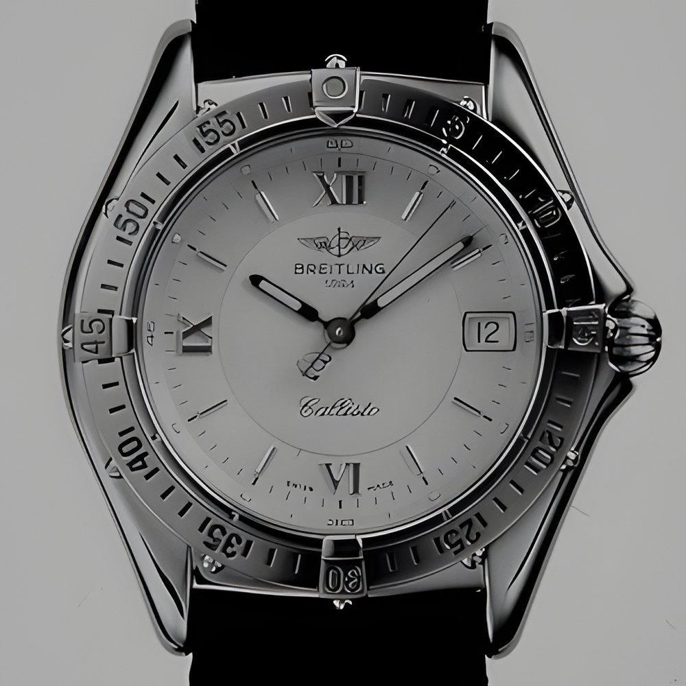 Breitling’s new-generation «Callisto II» is designed first and foremost for the rugged outdoor life. Built for improved sturdiness, its case is equipped with a new, patented rotating bezel and its water-resistance to 100 m is guaranteed by a crown and stem with double gasket. Its cambered sapphire crystal features multi-layered glareproofing on both sides and protects a lacquered or engine-turned dial under which runs an exceptionally accurate Breitling quartz electronic movement. Available with all-steel case or with two-tone finish with four 18K gold rider tabs. Leather, sharkskin or alligator strap or else Pilot or Rouleaux bracelet.
