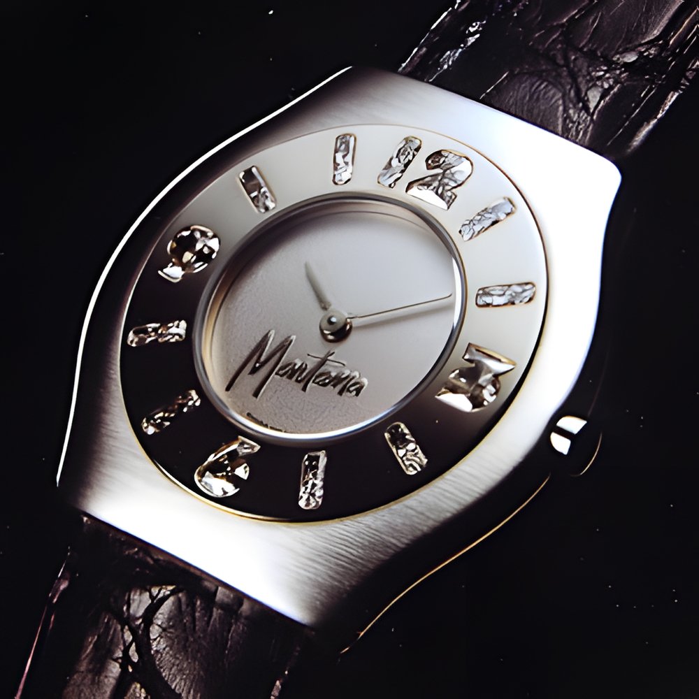 Montana’s limited-edition «Saga» design is fashioned in 18K gold. Its typical, easily identified bezel features four Arabic numerals and eight hour markers each sculptured from a single Top Wesselton diamond, individually scanned to monitor the quality of its setting. Quartz movement, case water-resistant to 30 m, with sapphire crystal and genuine alligator strap fitted with a white gold folding clasp.