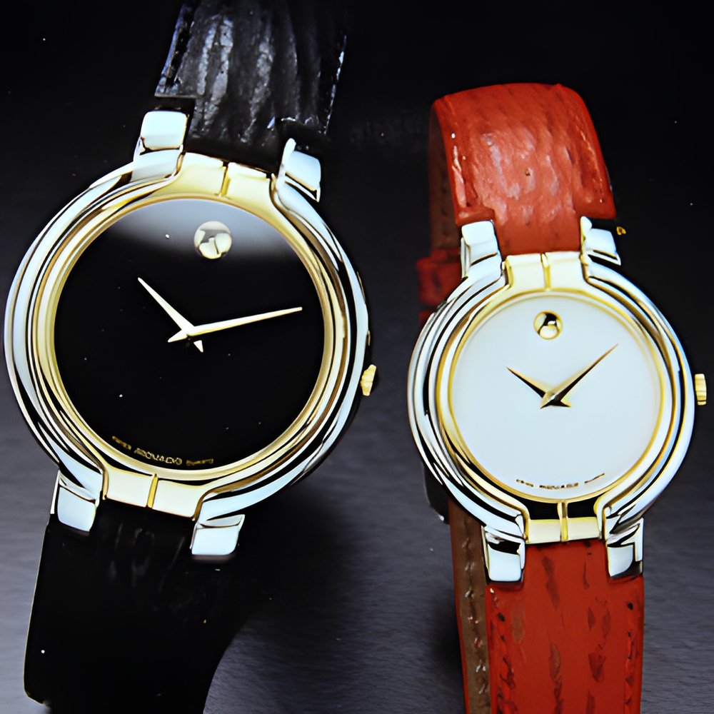 Available for women as well as for men, this new version of the «Mosaic Museum Waich» is styled in stainless steel and goidpiate. Choice of white or black dial and of black, blue or red sharkskin strap. A colour-coordinated design with green dial and matching bracelet rounds out the line. ETA Swiss Quartz movement in a case water-resistant to 30 m.