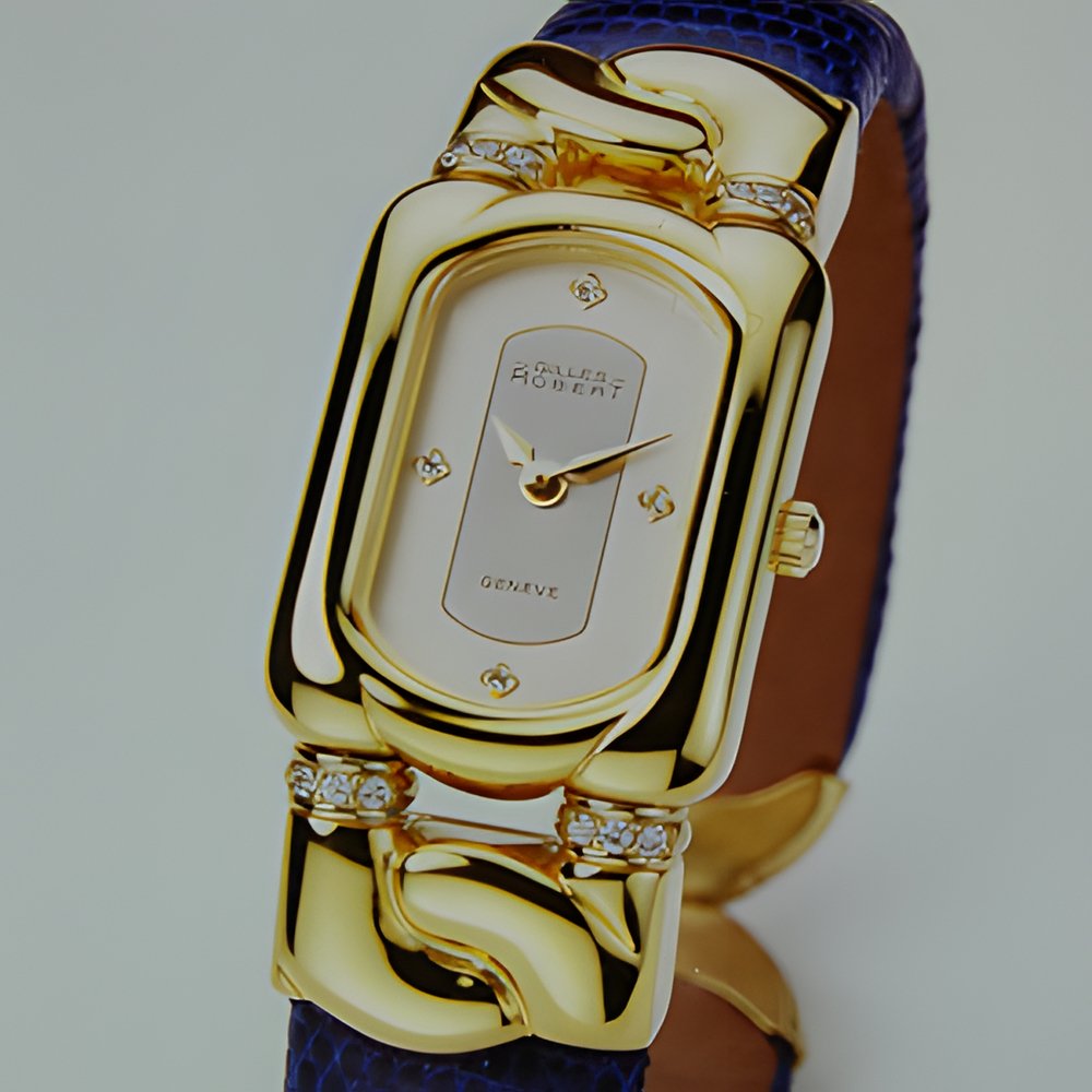 A “jewel-watch” from the new “Volubilis” collection whose stunning styling comes as much from its original silhouette as from the harmonious mix of its various constituent materials. With a 20-micron goidpiate finish, its case houses a Swiss-made quality movement while four diamonds enhance its dial and more are set on the four partitions. Its easy-to-change lizard bracelet is available in a choice of fashionable colours.