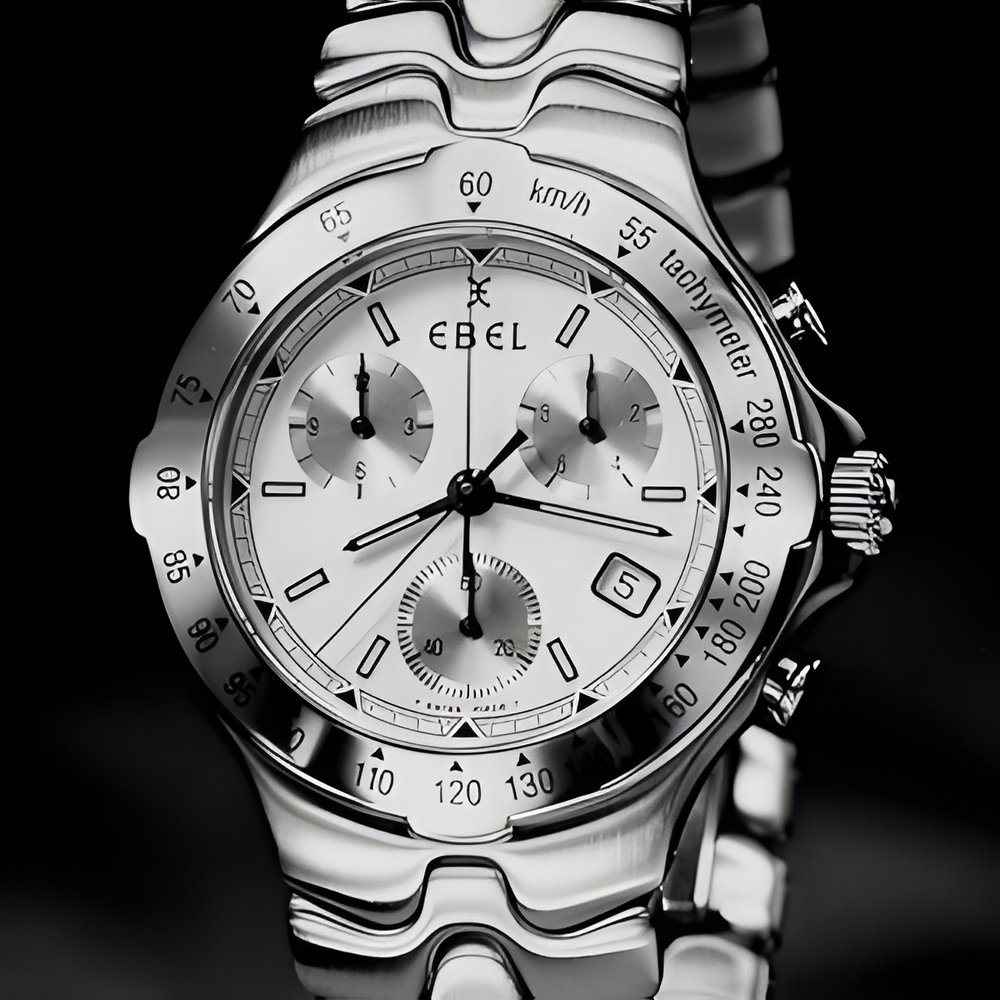 The “Chrono Sportwave” now joins Ebel’s Sportwave line. Water-resistant to 50 m, this quartz-piloted chronograph provides 1/10th of a second time readouts as well as split times. The tachymetric scale engraved on its bezel serves, for instance, to determine hourly speeds. For people who travel between time-zones, the hour hand can be reset without affecting the other functions. The brushed steel surface finish of its case and bracelet, equipped with a deployment buckle, contrasts with the buffed steel or gold of the bezel, crown and pushpieces. White, black or bright blue dial. Five-year international warranty.