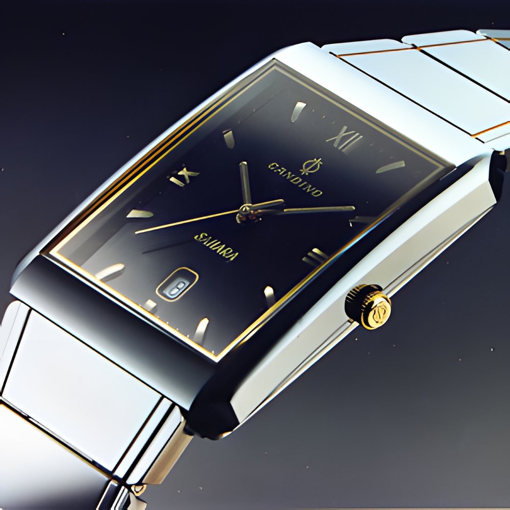 The result of Candino’s long-standing experience and continuous research and development, this new «Sahara)> model is the latest addition to its collection of scratch-proof watches. The case, which is water-resistant to 30 m, as well as the bracelet are made of skin-friendly tungsten carbide metals. The caseback is fixed with four screws. Both the curved sapphire crystal and bracelet, with its butterfly security clasp, are scratch-proof. Ladies’ and gentlemen’s versions are also available with a leather strap and folding clasp.