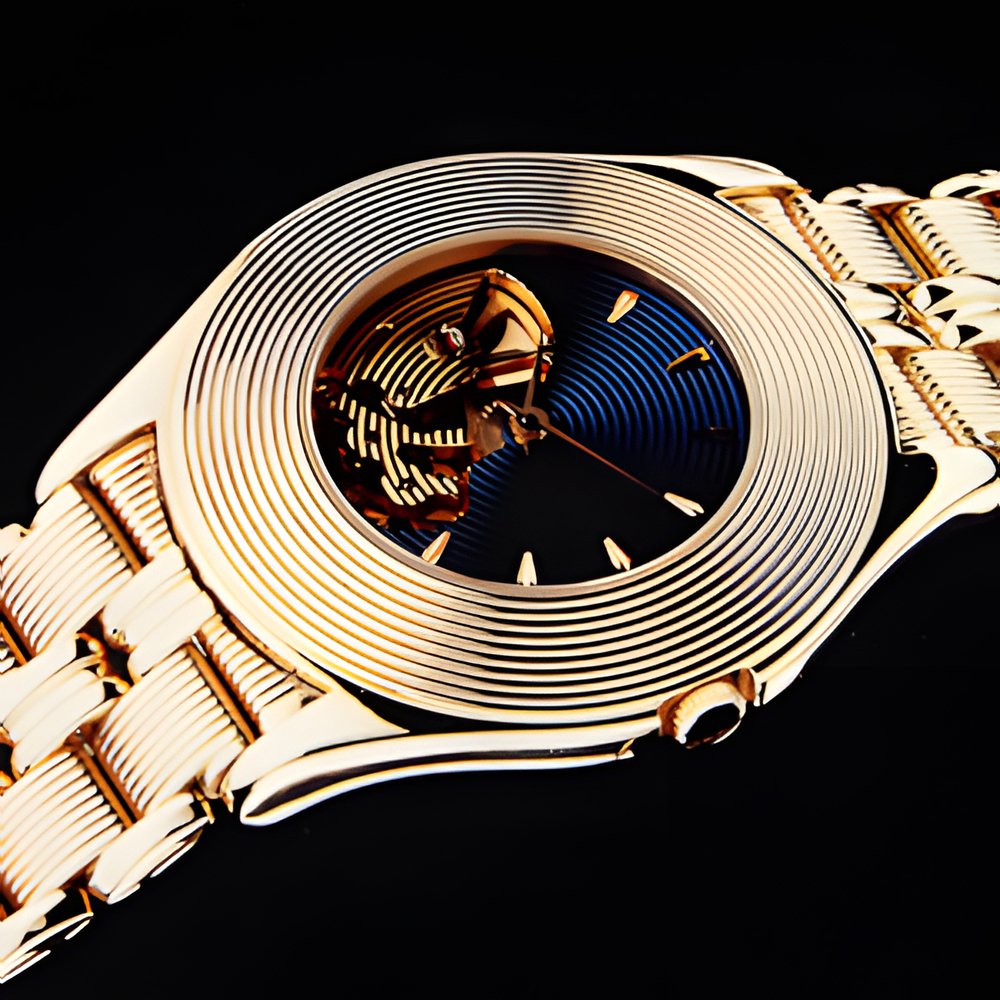 Sober and discreet with perfectly balanced form and proportion, this extra-thin watch features a hand-wound mechanical movement. Both the case, which is water-resistant to 30 m, and the bracelet are in 18K yellow gold, while the bezel’s ribbon decoration is set with 92 diamonds (1.10Ct). The heart of the movement can be seen through the open-work dial, which is protected by a sapphire crystal.