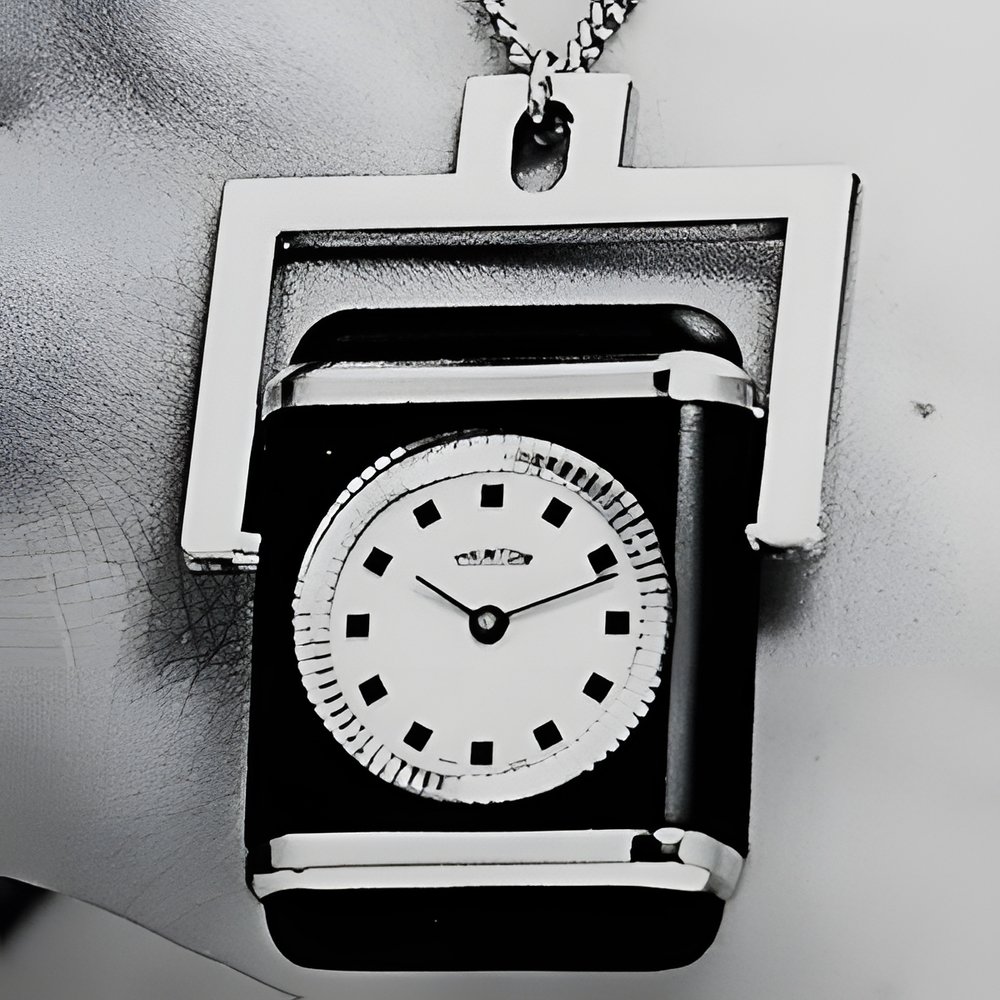 An original idea and an original design : this pendant has a small mirror on the reverse side for checking makeup or hairdo and its fastener doubles as a bracket. (BADER-MENTOR)
