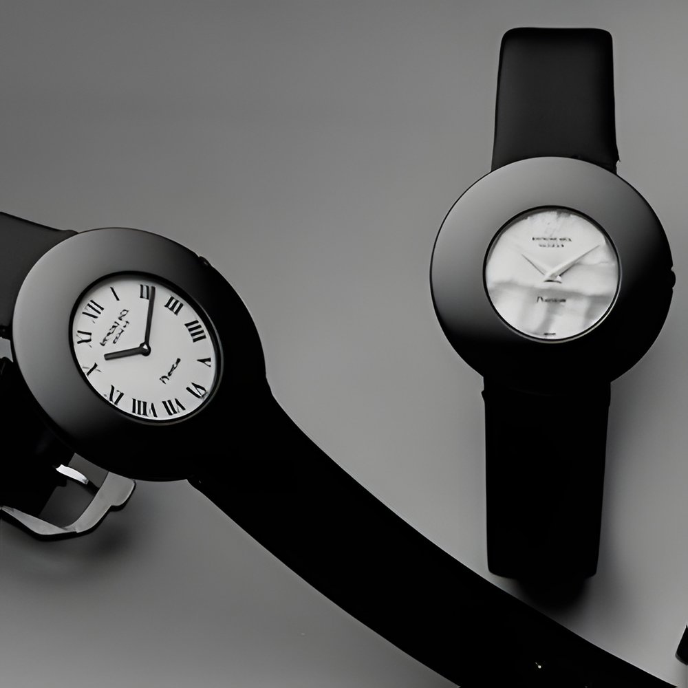 Designed for the younger generations, very slim, very trendy water-resistant (to 30 m) designs. Their Art Deco looks include a broad, subtly outcurved titanium nitride bezel framing a choice of dial styles : white, black, mother-of-pearl or even stone-set. Integral leather straps. ETA quartz movements. Available in 3 sizes : men’s, intermediate and women’s. (RAYMOND WEIL, Genève - “Phantom” Collection)