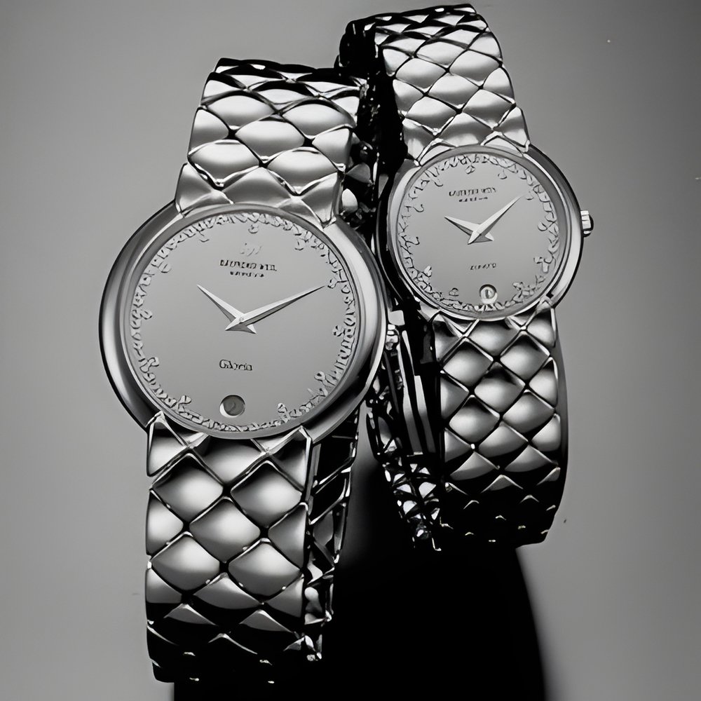This new goldplated design from Raymond Weil, Geneva, features a perfectly integrated bracelet with original decorative structure. The case, waterresistant down to 30 m, houses a very thin ETA Swiss Quartz movement. Wide choice of plain and gem-set dials. For men and women. (RAYMOND WEIL - GENEVE)