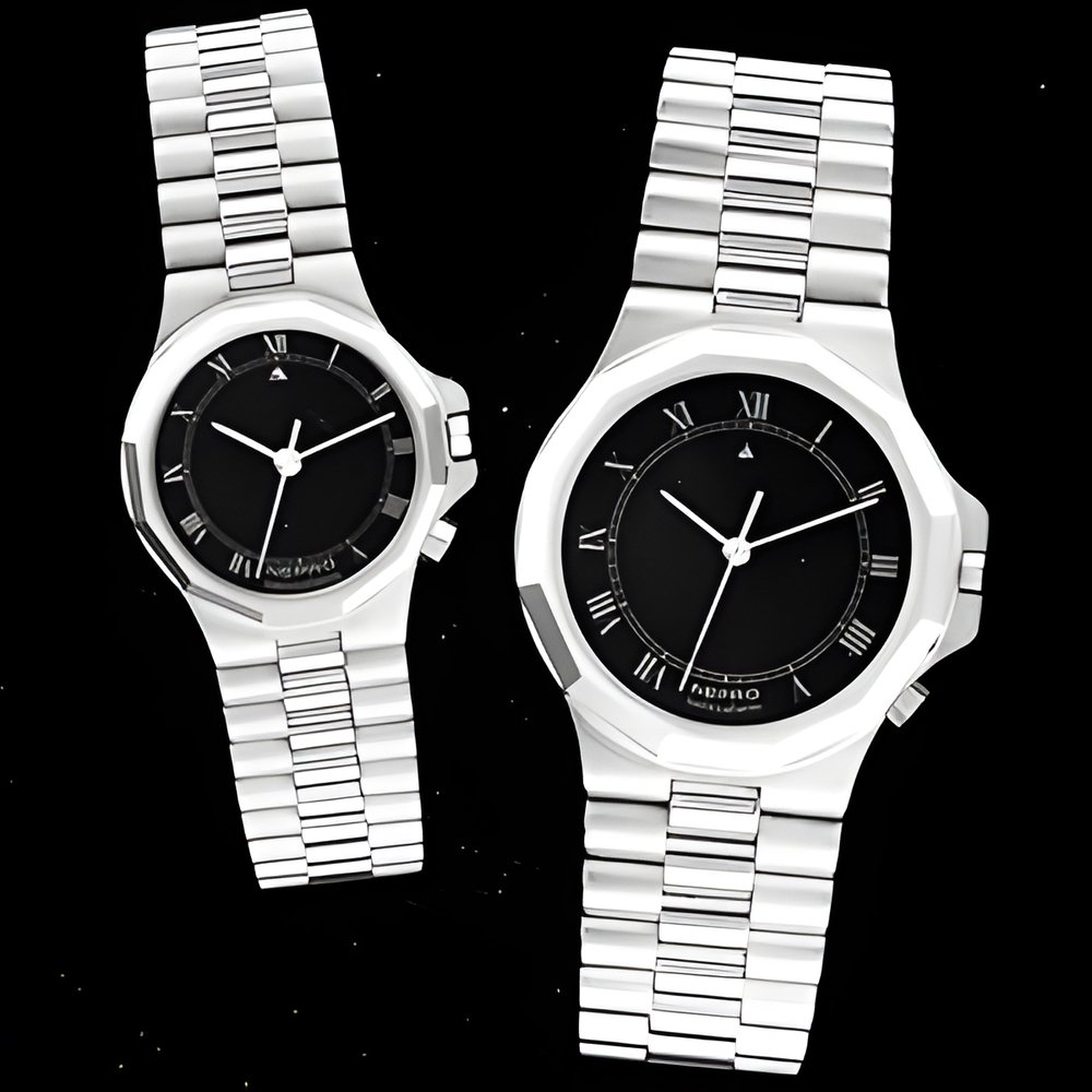 For the first time come analogue quartz alarm watches for women as well as for men. A loud and clear signal (for men), a musical one (for women) - both amazingly simple to use. To set the alarm, just pull out and rotate the crown; to stop it, merely press on the crown. (NEPRO “Swissalarm”)