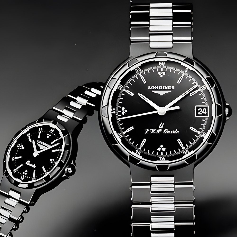 Only one minute’s rate drift in five years! Longines presents its new "VHP (Very High Precision) model fitted with a movement whose 32 KHz quartz is served by a thermometer quartz vibrating at 262,144 Hz which monitors outside temperatures and periodically compensates for their effects, through read-only memory chips (ROM’s), by acting directly on the movement’s rate. The watch’s lithium battery provides a 5-year power supply... at the end of which the Longines VHP will have gained or lost a minute at most. (LONGINES VHP).