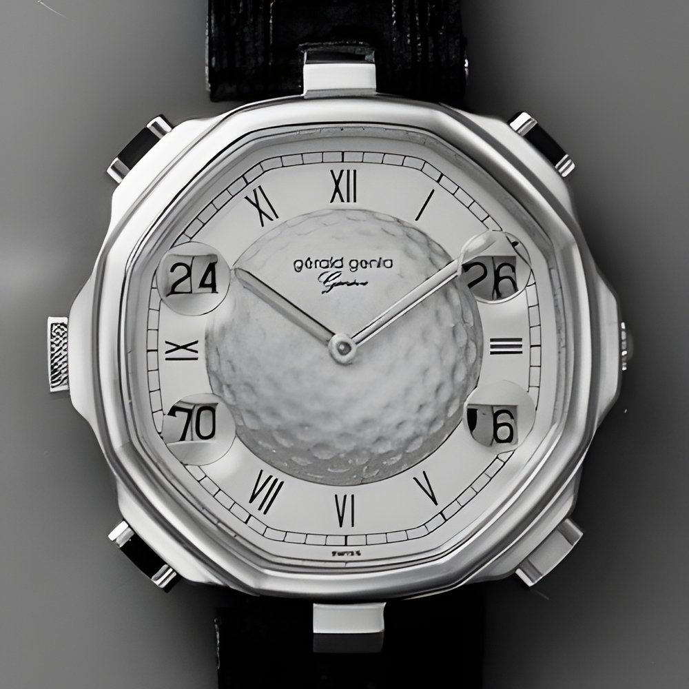Watch cum stroke-counter for golfers. It tots up each player’s strokes, from i to 99, with a general return-to—zero command. Quartz movement, water-resistant case, worn on a sharkskin strap or hung from the belt. (“L’Open” by GERALD GENTA - Registered model)
