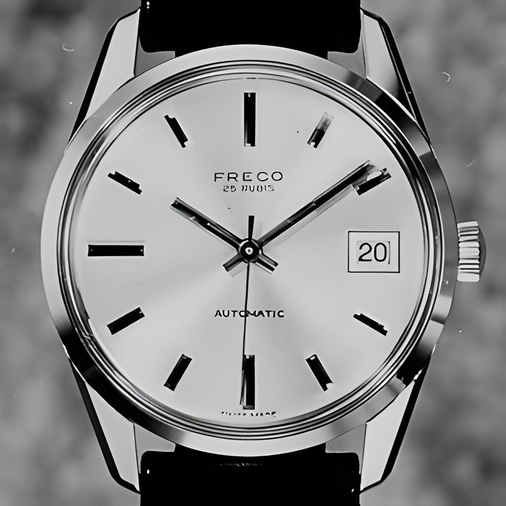 This automatic calendar watch is equipped with a new antishock system The movement is suspended elastically within the case - held in place by three small plastic cylinders inserted between the case and the movement. They complement the normal shock-absorber protecting the balance staff and assuring a new standard of protection for the entire movement. Waterproof. Gold plated or steel. (FRECO)