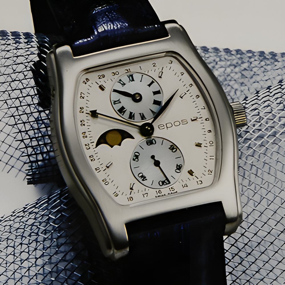 For the first time, a regulator with moon phases. The mechanical movement has been developed on an old calibre (P. 7046) that has been out of use for 30 years. Decorated and set with blued screws, it is visible through the transparent case back. The original dial with a regulator design (hours at 12 o’clock, centre minutes and small seconds at 6 o’clock) also features a date hand and a moon-phase indicator at 9 o’clock.