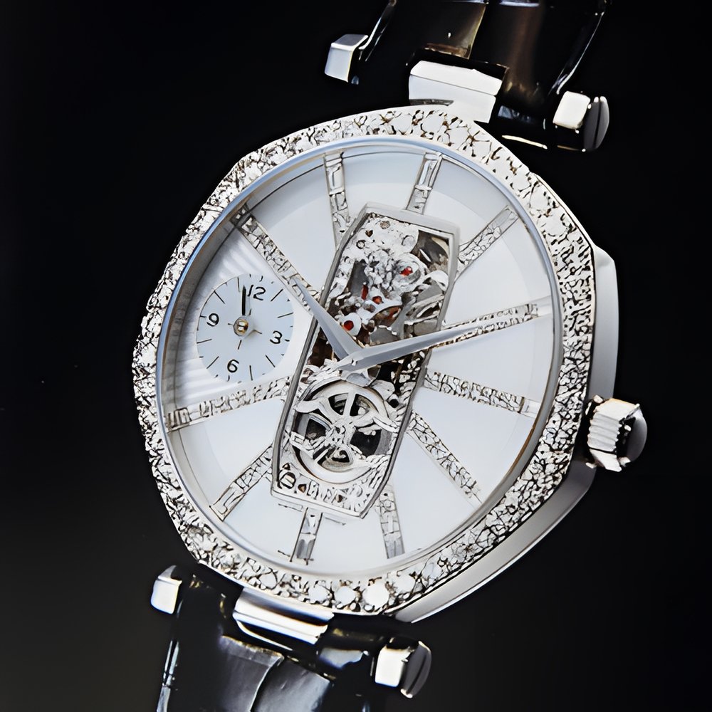 Only 50 pieces of this collector’s item have been produced, 30 of them numbered for «Greenwich Mean Time». This timepiece links quartz with an engraved, skeleton mechanical movement, visible in the centre. Its seven-sided 750 (18K) gold case is set with diamonds. The mother-of-pearl dial, protected by a faceted sapphire crystal, is divided into parts, each framed by a row of diamonds. One part is hand-engraved to facilitate reading the second time zone.