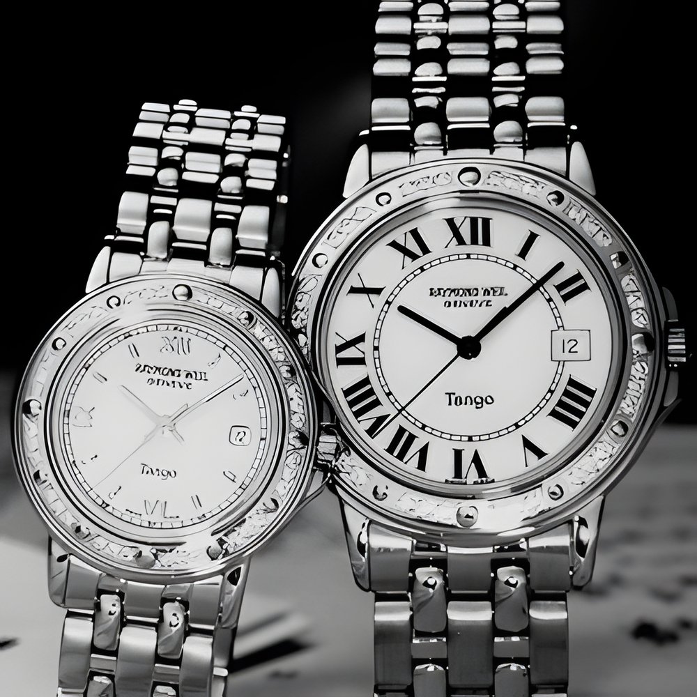 These two models with brilliant-set bezels are equipped with quartz movements. The man’s model, in steel, has a white dial with black Roman numerals and comes on a matching bracelet. For the lady’s gold-plated model on a matching bracelet, there is a pink dial with gold-plated hour markers and hands. Both have a sapphire crystal and are water-resistant to 50 m.