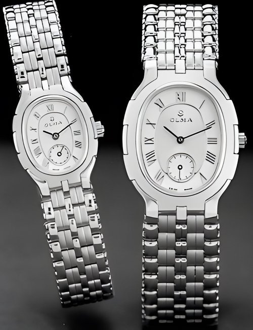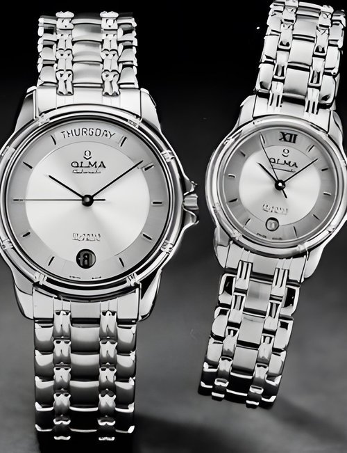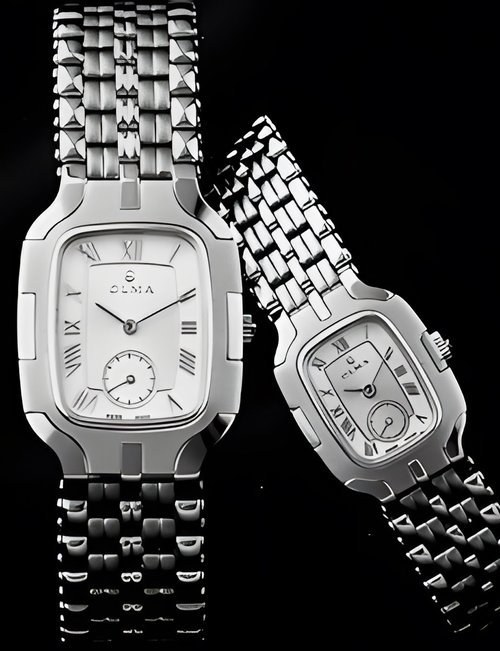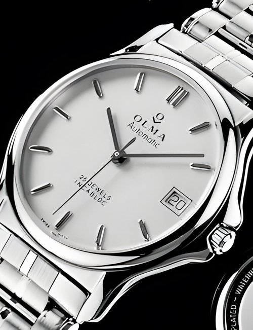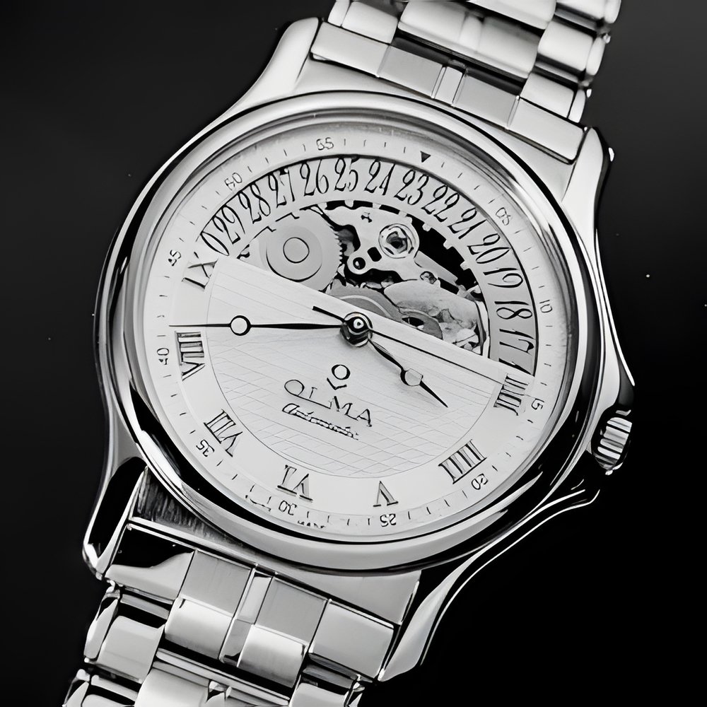 A new half-skeleton automatic model : both the ETA 2824 movement and the calendar can be partially seen through an open-work semi-circle on the dial. Gold-plated case and bracelet, transparent back, guilloché dial with Roman numerals, centre seconds hand and date indicator at 12 o’clock. Available in stainless steel or bimetallic versions on a leather strap or metal bracelet.