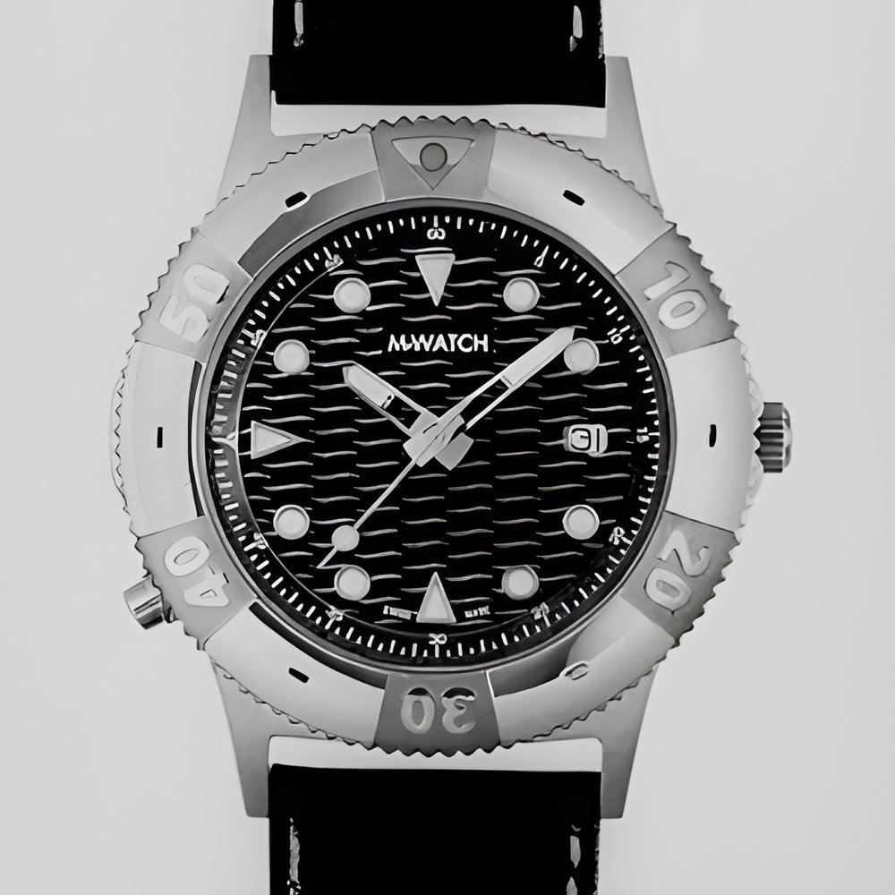 A quartz watch, inspired by diver’s models, with a dial illuminated by a push-button. Water-resistant to 30 metres, the 100% recycled metal case has a uni-directional rotating bezel with embossed numbers and a dial with a permanently luminous dot at 12 o’clock. The battery can be easily changed by the wearer. Two versions: blue dial and blue leather strap with white stitching, or white dial and black leather strap with white stitching. In Switzerland, sold exclusively through Migros. Distribution and after-sales service guaranteed in more than 50 countries.