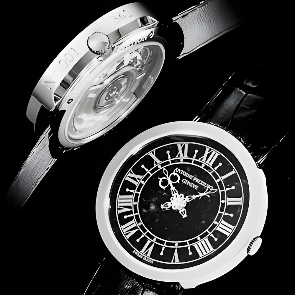 Contemporary interpretation of the Siena clock, with a dial fashioned in finely cut natural marble and featuring replica hands under a sapphire crystal. Automatic movement, minute and hour indicators, 42-hour powerreserve, 25.6 mm in diameter, rodium-plated, Côtes de Genève decoration, 21 rubies, 28,800 vibrations/hour, flat balance-spring, engraved rotor. 750 (18K) gold or platinum three-part case, water-resistant to 30 m, screwdown back. Hand-stitched, full-skin genuine crocodile strap with gold buckle.
