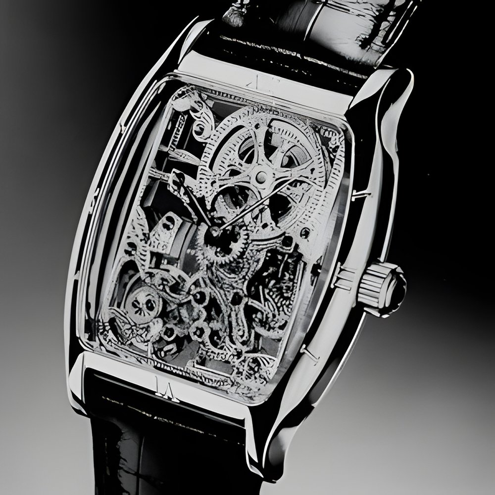Both the front and back of this rectangular skeleton movement, finely crafted and hand-engraved by the artist Armin Strom, can be seen through the sapphire crystals. The tonneau-shaped case is equipped with a 1937 Alpina calibre and features a crown set with a cabochon sapphire. This 750 (18K) yellow gold model is also available in white gold or platinum.