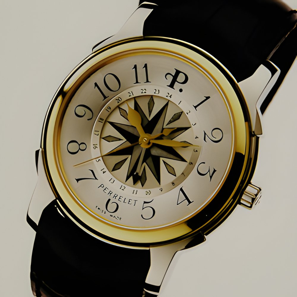This stainless steel or 750 (18K) gold automatic watch with double time-zone pays tribute to a celebrated explorer and navigator. Its hand-polished, lacquered guilloché dials are decorated with compass cards to indicate that it can also serve as a sun compass. The hour-circle is identical to that used on a 1770 model made by A.-L. Perrelet. Water-resistant to 30 m. Mississippi crocodile strap.