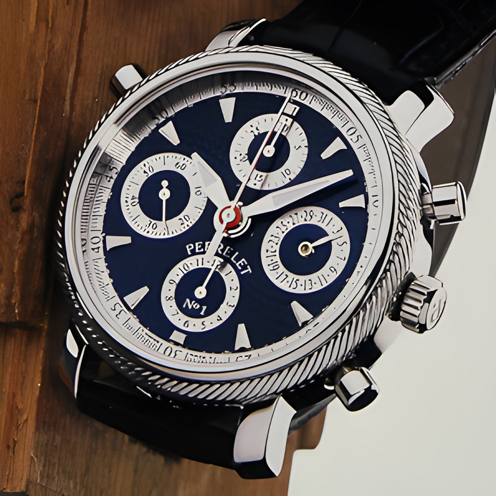 This limited series of 100 pieces pays tribute to Louis-Frédéric Perrelet, inventor of the split-seconds mechanism in 1827. Each of these split-seconds chronographs bears number i because they are made unique by the different combinations of guilloché patterns and coloured lacquers on the dials. Handengraved automatic movement, 28,800 V/h, 30 rubies, Glucydur balance. Hours, minutes, small seconds and date display. Steel case on a Mississippi alligator strap.