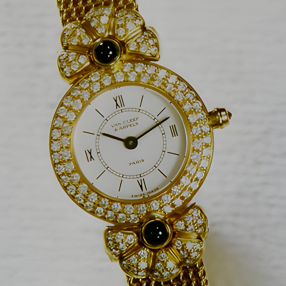 A new Milan-link bracelet has been added to the 1930 collection, underlining the Thirties’look of the round 750 (18K) yellow gold model, which has 68 diamonds (0.50 ct) on the bezel and 60 diamonds (0.30 ct) and 2 cabochon sapphires (0.40 ct) on the attachments. The tonneaushaped 750 (18K) yellow gold model on a pastel blue moiré bracelet has 60 diamonds (0.45 ct) on the bezel and 32 diamonds (0.41 Ct) and 2 cabochon sapphires (0.40 Ct) on the attachments. Both these models are also available with a square case. Quartz movements.