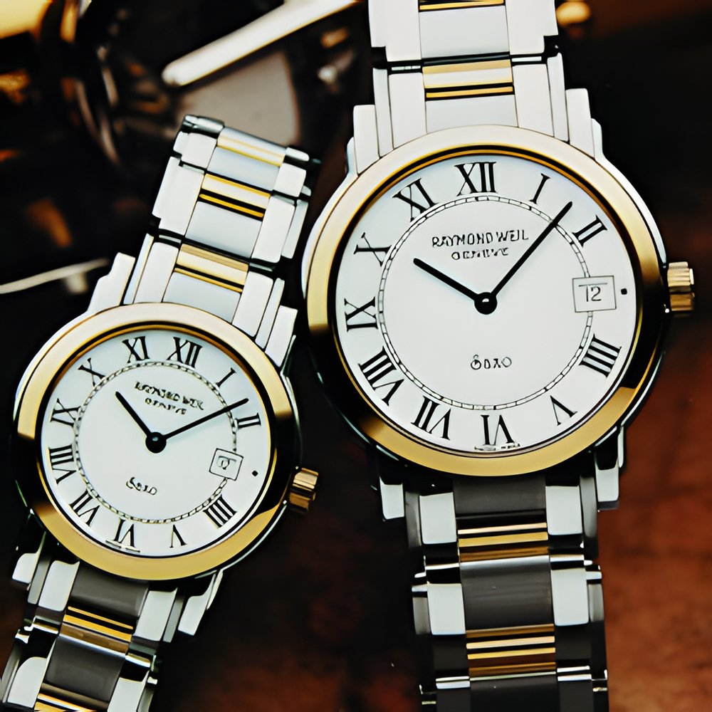 The steel/gold-plated model in this collection comes in men’s and ladies’ versions featuring a white dial with black embossed Roman numerals and a date window at 3 o’clock. Waterresistant to 100 m, its case is fitted with a quartz movement and sapphire crystal and comes on a matching bracelet with a folding clasp.
