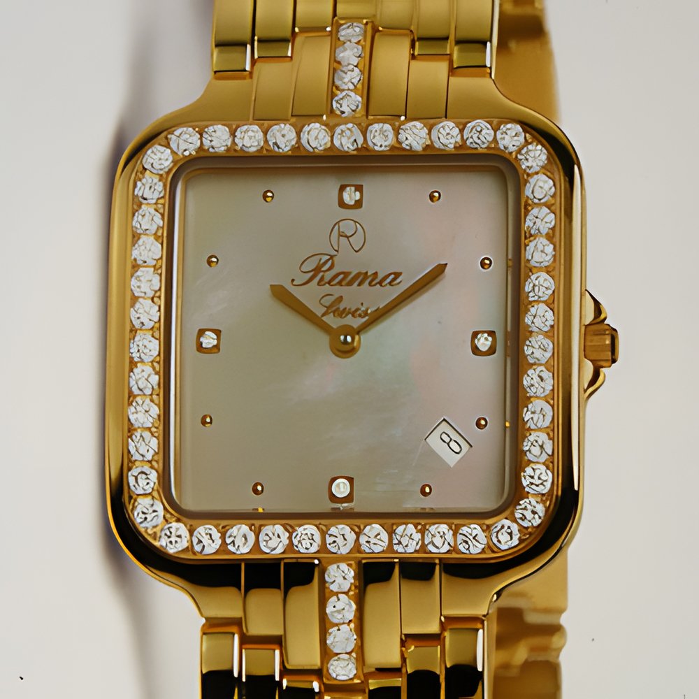 This creation with an original calendar is available in 750 (18K) gold - case and bracelet weigh 148.5 grams for the men’s version and 109.75 for the ladies’ - stainless steel, or steel and gold. The dial is available in silver, champagne, black or pearled white. In the jewellery model, the bezel is set with 54 diamonds and the dial with 4. Curved, scratch-resistant sapphire crystal. Water-resistant to 30 m. Serial numbers. Gold model in limited series with certificate of authenticity.